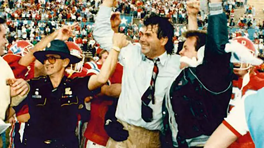 Louisiana Tech celebrating an Independence Bowl tie