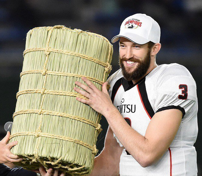Despite this setback, Colby Cameron bounced back in a huge way in 2016. He led the Frontiers to an 8-1 record in the regular season. During the playoffs, the Fujitsu men made it back to the X Bowl, where they defeated the Obic Seagulls 16-3 and won a berth in the 70th annual Rice Bowl. During that game, which was attended by nearly 34,000 people at the Tokyo Dome, the Frontiers soundly defeated the Kwansei Gakuin University Fighters (note: KGU is seriously Japanese Bama) by a score of 30-13. For his heroics, Cameron earned the Paul Rusch Cup, given to the MVP of the X League. He also earned MVP honors during the X Bowl. When the Japan Times asked him about his MVP award in the X Bowl, Cameron replied, “Game MVP in football is kind of hard to get because it’s such a team sport. It could’ve gone to every player on our offense, it could’ve gone to the special teams. But more than the MVP, I’m happy to have won, I think that’s the most important thing. MVP is just a cherry on top.”